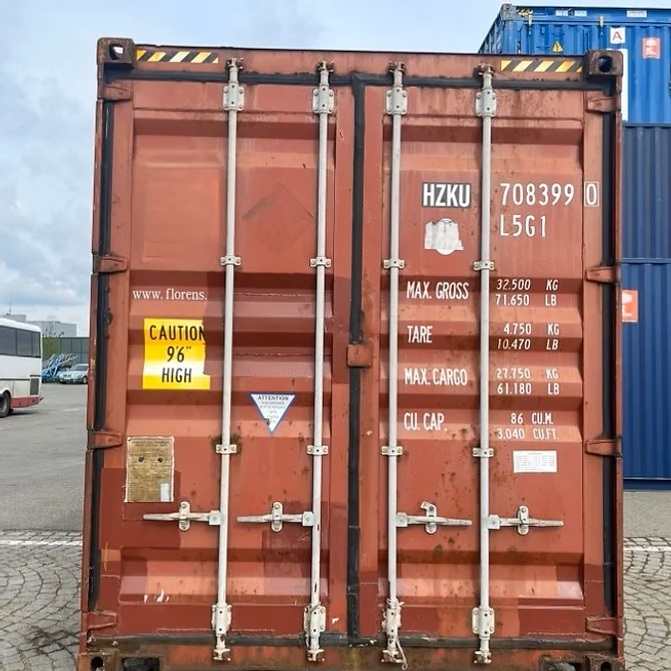 - Höhe: 2.896 mm (9 Fuß 6 Zoll) für einen High Cube Container